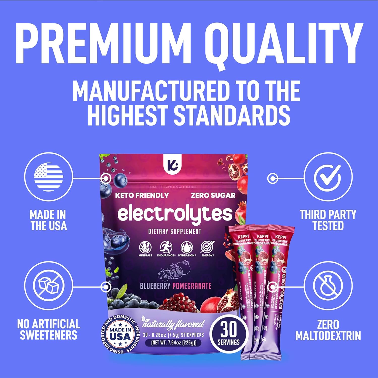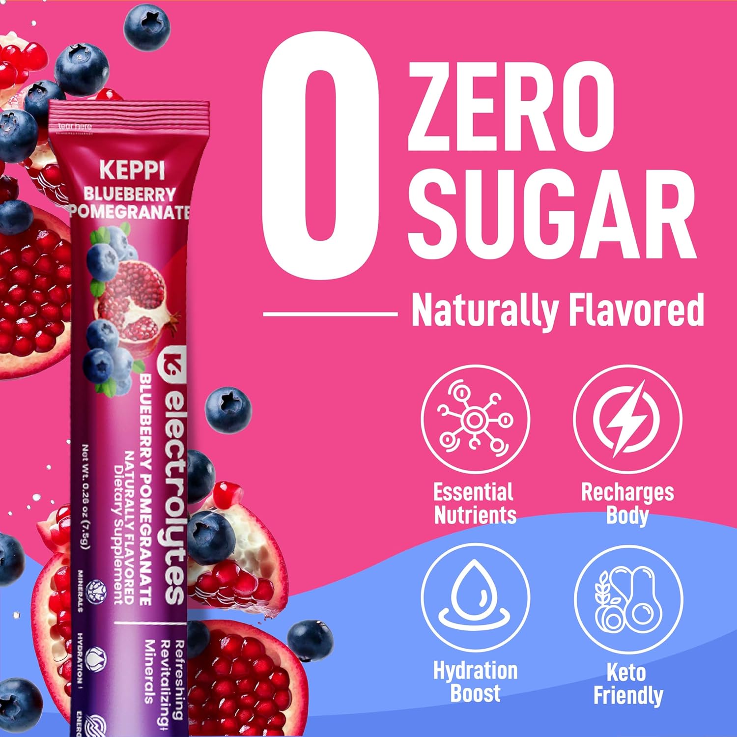 Enjoy the juicy, vibrant burst of sweet blueberries and tart pomegranate in every sip. Our Blueberry Pomegranate Electrolyte Stick Packs deliver clean hydration with bold flavor—no sugar, no nonsense.