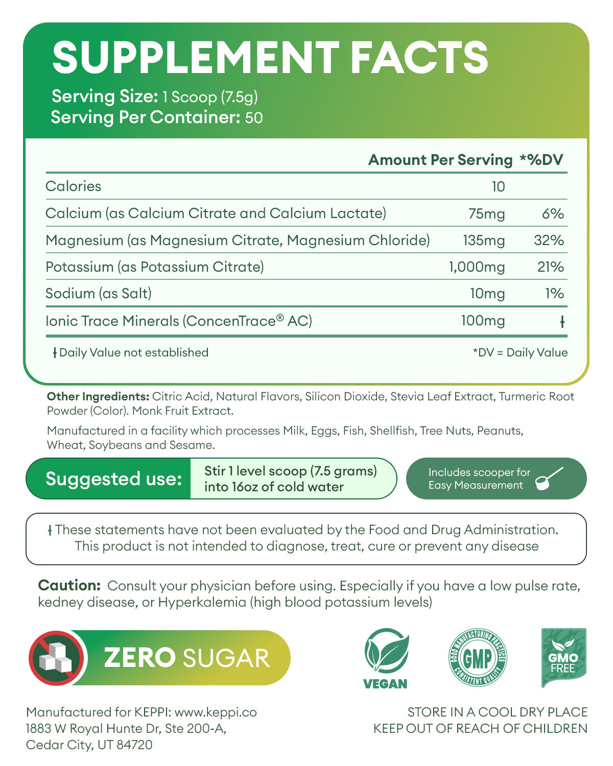 Formulated with Potassium, Magnesium, Sodium, Calcium, and trace minerals to support hydration, energy, and electrolyte balance—anytime, anywhere.